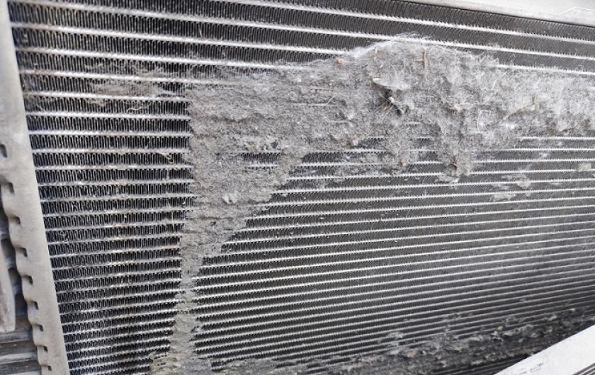 - При визуальном осмотре - существенное засорение сот радиаторов, наличие на них затвердевший грязи, насекомых и мусора.